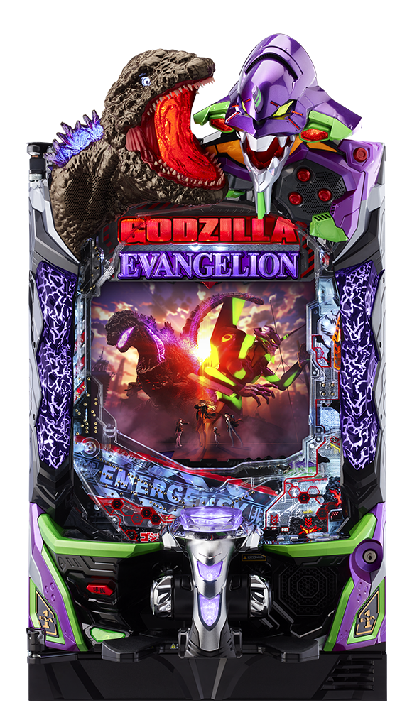 「ゴジラ」と「エヴァンゲリオン」の奇跡のコラボレーションがパチンコで登場。すべてがオリジナルストーリーで構成され、オリジナルキャラクターの「魏怒羅レイ」や「エヴァンゲリオン初号機“G”覚醒形態」は本機でのみ映像を見ることができる。筐体は専用筐体「G-IMPACT」を採用し、上部に可動役モノ「ゴジラ咆哮ギミック」を搭載、チャンスや大当り等様々なタイミングで可動し、臨場感を盛り上げる。スペックはミドルタイプの1種2種混合タイプ。右打ち「超G覚醒バトル」はラウンド中に展開される使徒バトルの展開が継続のカギを握る。右打ち中の大当りはすべて1500個となるが、上乗せもあり、「暴走モード」発生なら3,000個以上、「神生モード」発生で最大7,500個とまとまった出玉獲得に期待が出来る。BGMには『Teardrops of hope』『集結の果てに』『集結の時~Territory~』の3曲のオリジナル楽曲を新規で搭載した。